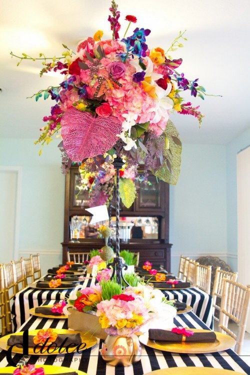 This collection of photos shows a range of designs varying in both style and price point. These are a small sample of what we could create for you. Centerpieces can be as unique as each person giving the event. We hope these photos will inspire you to form ideas of what look you'd like for your centerpieces.