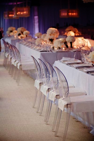 These are also known as ghost chairs because they are clear or smoke tinted. Although contemporary in look, they can complement the more traditional setting as well.
